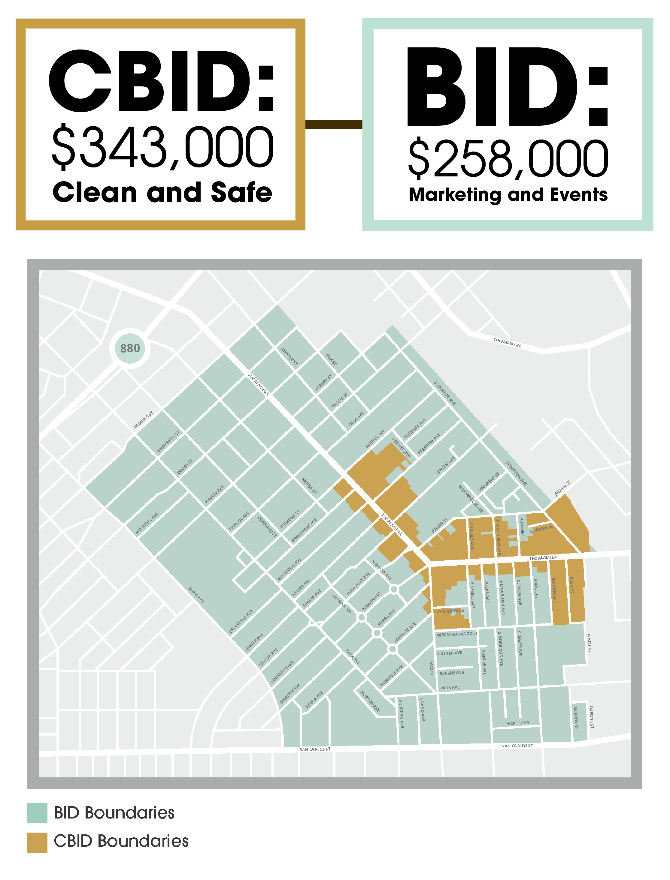 This proposed BID is separate and distinct from The Alameda Community Benefit Improvement District (TACBID), which is funded by landowners and focuses primarily on cleanliness, safety, and beautification.